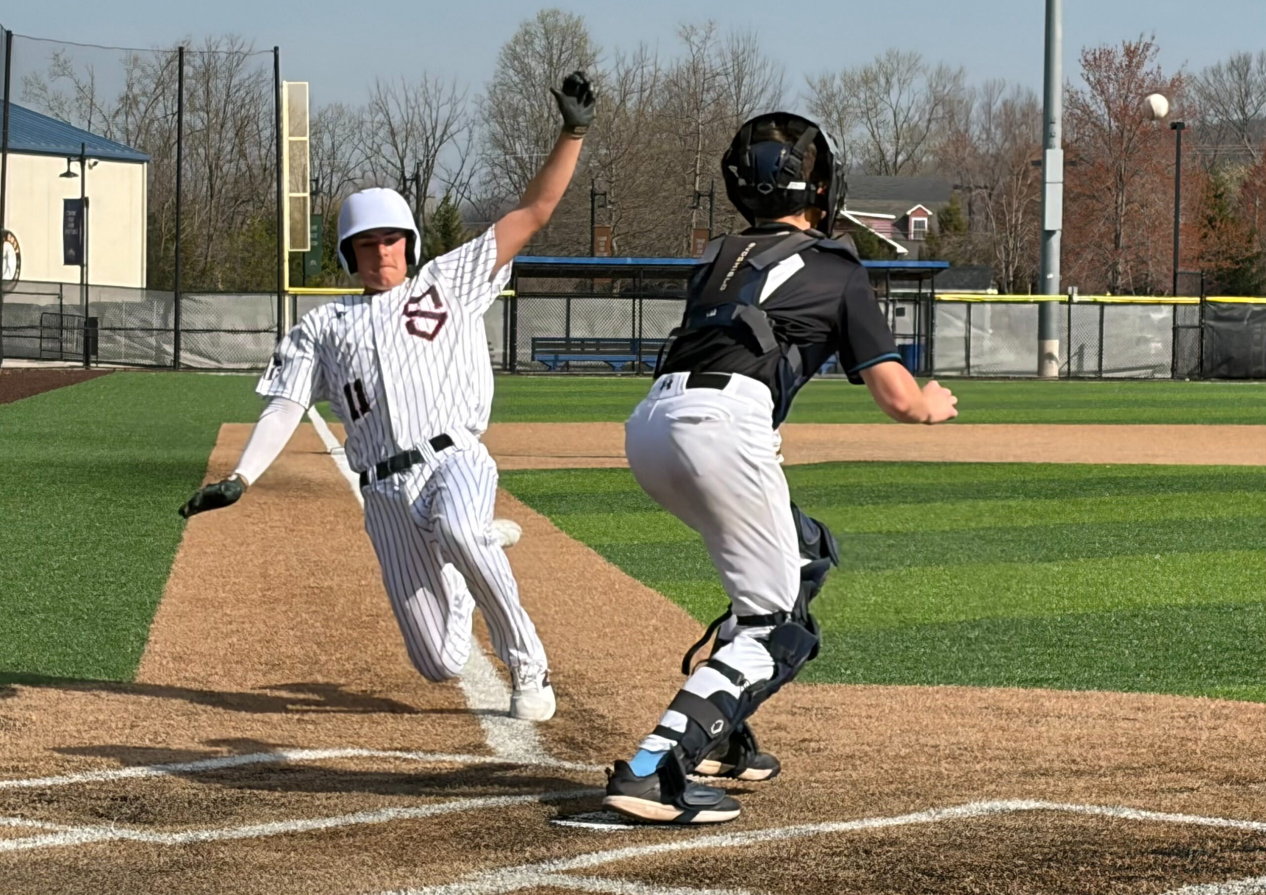Leo Plachino slides home safely during Sportika’s 7-2 win in the Easter Extravaganza.
