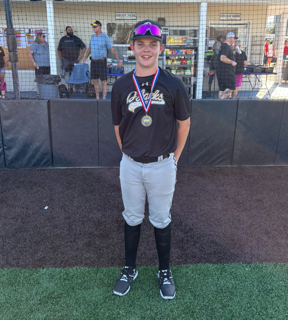 In the semifinals, Liam Freyre allowed one hit over five innings, Chase Hallett yielded one hit over the remaining two and Harrison Politi hit an RBI single in the second inning during a 1-0 win over Centercourt Baseball 15U Rogers.
