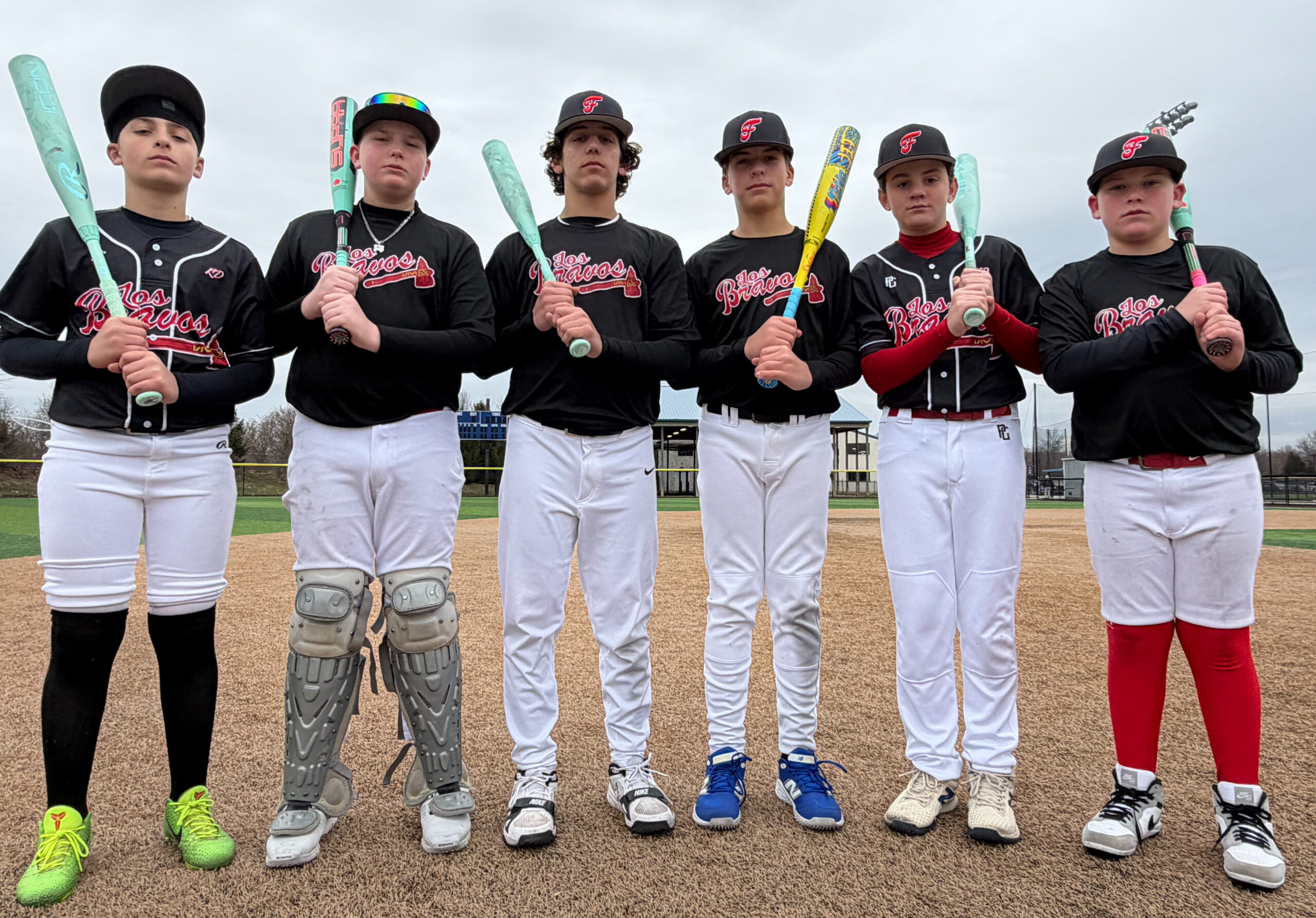 The FB 12U Braves hammered eight homers in the championship game, thanks to (from left to right) Paul Basile, Kameron Moyer, Liam Moutela, Will Hoffman, Mason Lagana and Landon Genao.