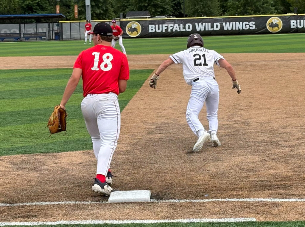 Tommy Ginnetti walked with one out. After Brandon Labs was hit by a pitch with two out, Hill hit a fly ball to shallow right field that landed near the foul line. It resulted in a one-run double.