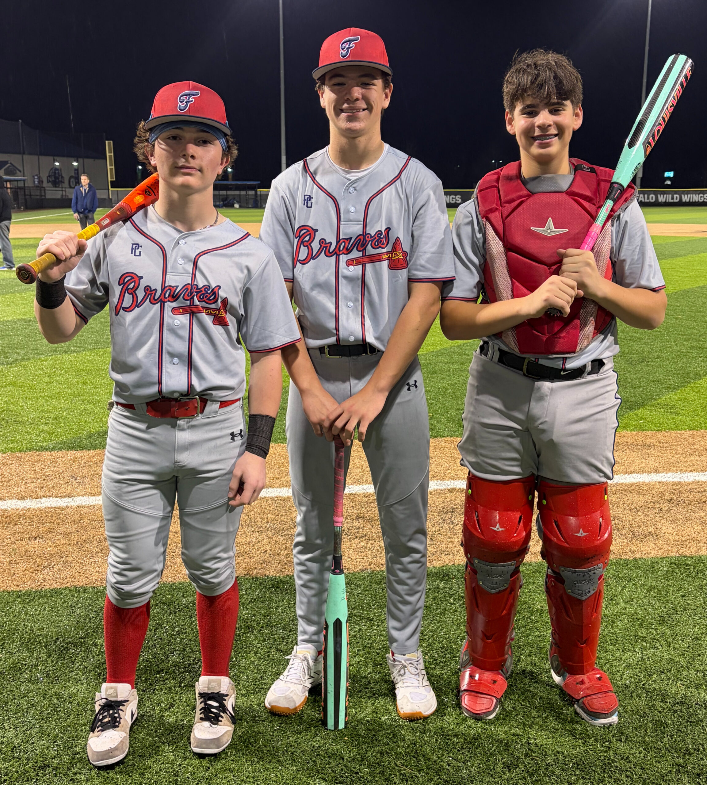 From left, Andrew Nazare, Zach Powell and Ryan Schnider homered for FB Braves 13U Red in the Battle At The Turf championship game.