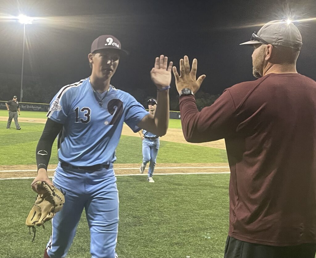 That’s where the drama ended. 9ers third baseman Jake Wagner made an acrobatic catch in foul territory for the second out and Redmond struck out the final batter.