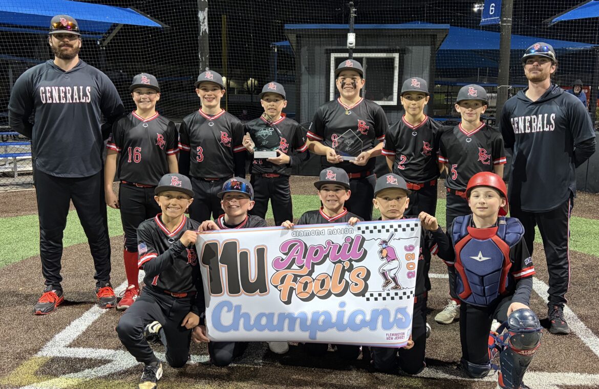 On the strength of Rider’s performance and a huge RBI double by Aiden Torpey which sparked a much-needed insurance rally, the Generals snagged a 6-4 victory and the 11U April Fool’s title on Sunday evening at Diamond Nation in Flemington.