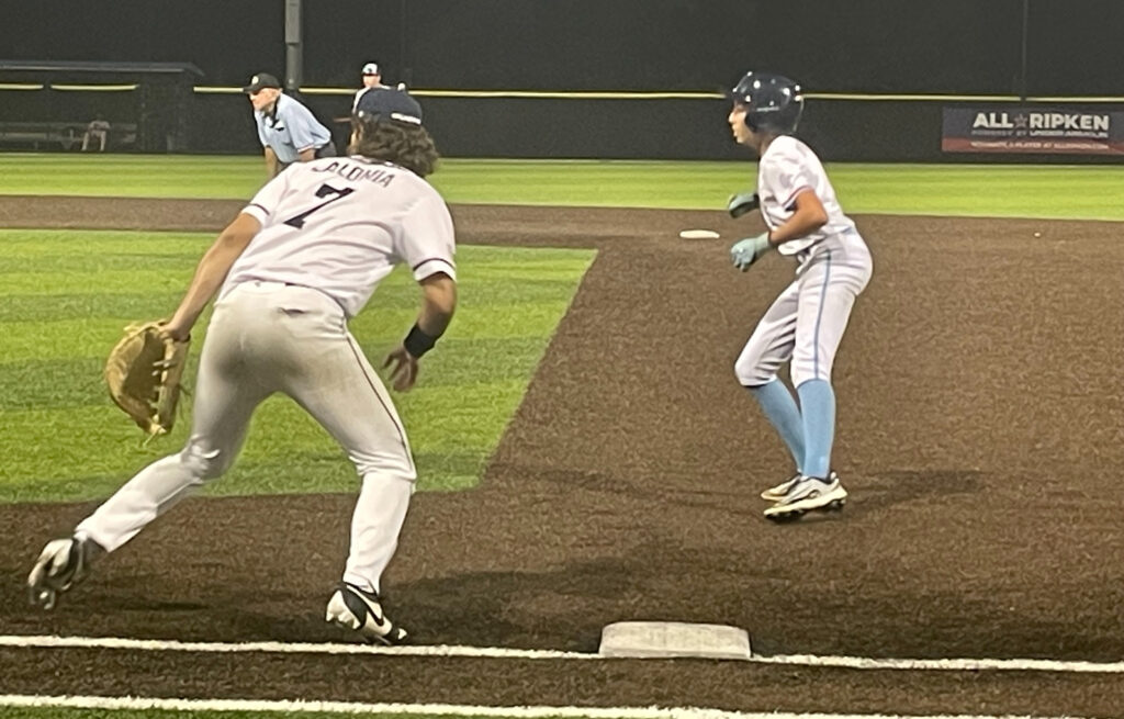 Leadoff hitter Ryan Puleo hit a Baltimore Chop just beyond DiGregorio’s grasp, allowing Reynolds to score. LaLonde scored on a double steal and Jeff Herroder doubled home Puleo for a 5-0 lead.