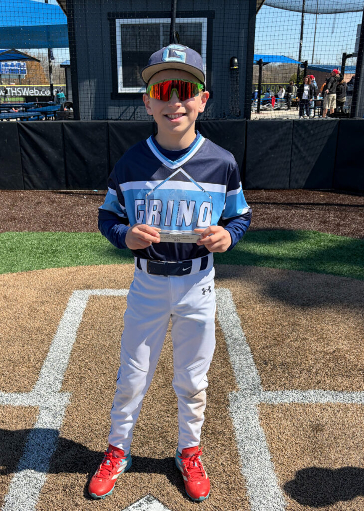 The stats don’t lie. Beni Spadaccino worked on his hitting so much that his coach had no choice to move him up from last in the batting order once the games began for the Connecticut Grind Carolina 9U ballclub.